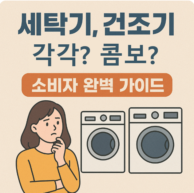 - 워시콤보 : 한 번에 연결되는 편리성은 최고지만, 동일 용량 대비 건조 속도는 느리고 전력 소모가 더 많을 수 있음.